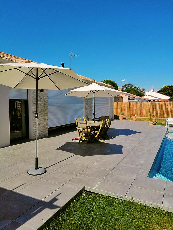 Désormais, ce sont les vacances toute l’année chez M. et Mme B. à Challans : une piscine, une terrasse et une plage, une table et quelques fauteuils… Apportez nous l’apéritif s’il vous plaît, les amis arrivent !