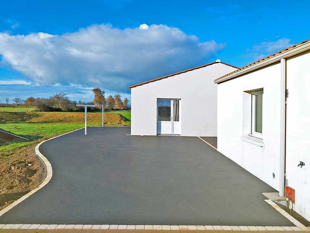 Terrasse et accès garage en enrobé et pavés à Vairé