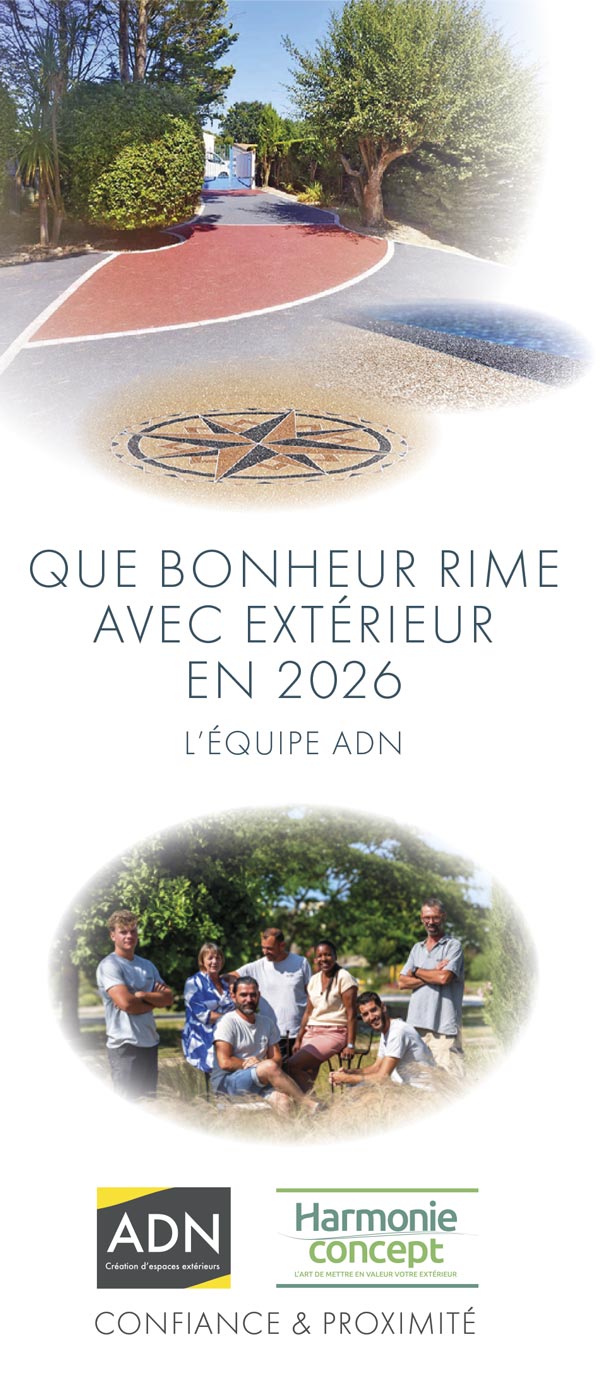 Toute l’équipe d’ADN Créateur d’Espaces Extérieurs vous présente ses meilleurs vœux pour 2026. Que cette année soit pour vous l’occasion de cultiver de nouveaux projets, de voir fleurir vos idées et de profiter pleinement de vos espaces extérieurs.